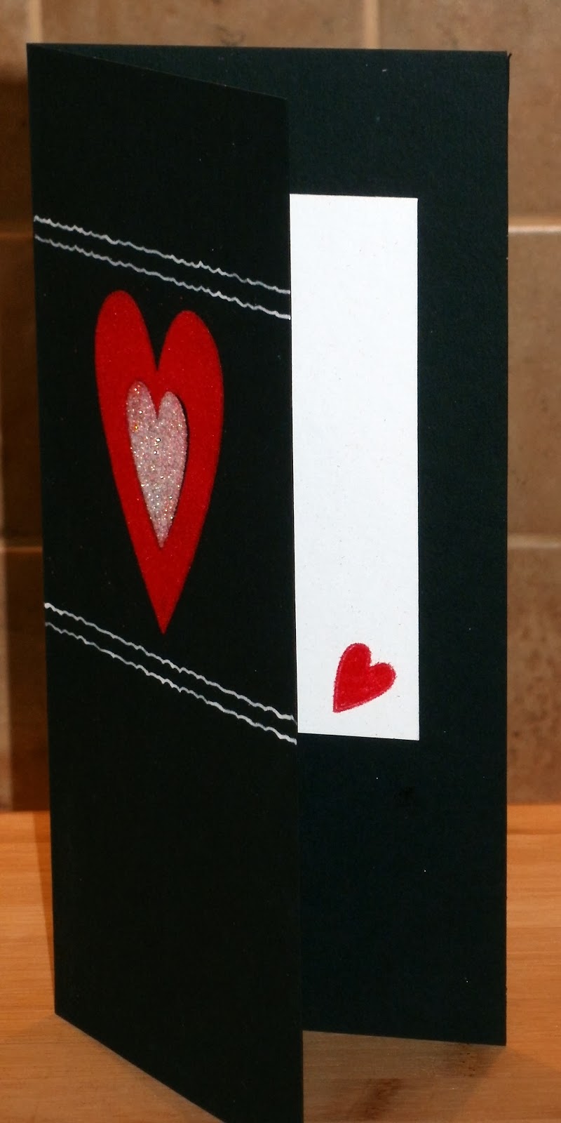 It was far too good to throw away, so I decided to incorporate it into a craft project. Red and black together always make me think of Valentine's day, so here's the card I made with it.