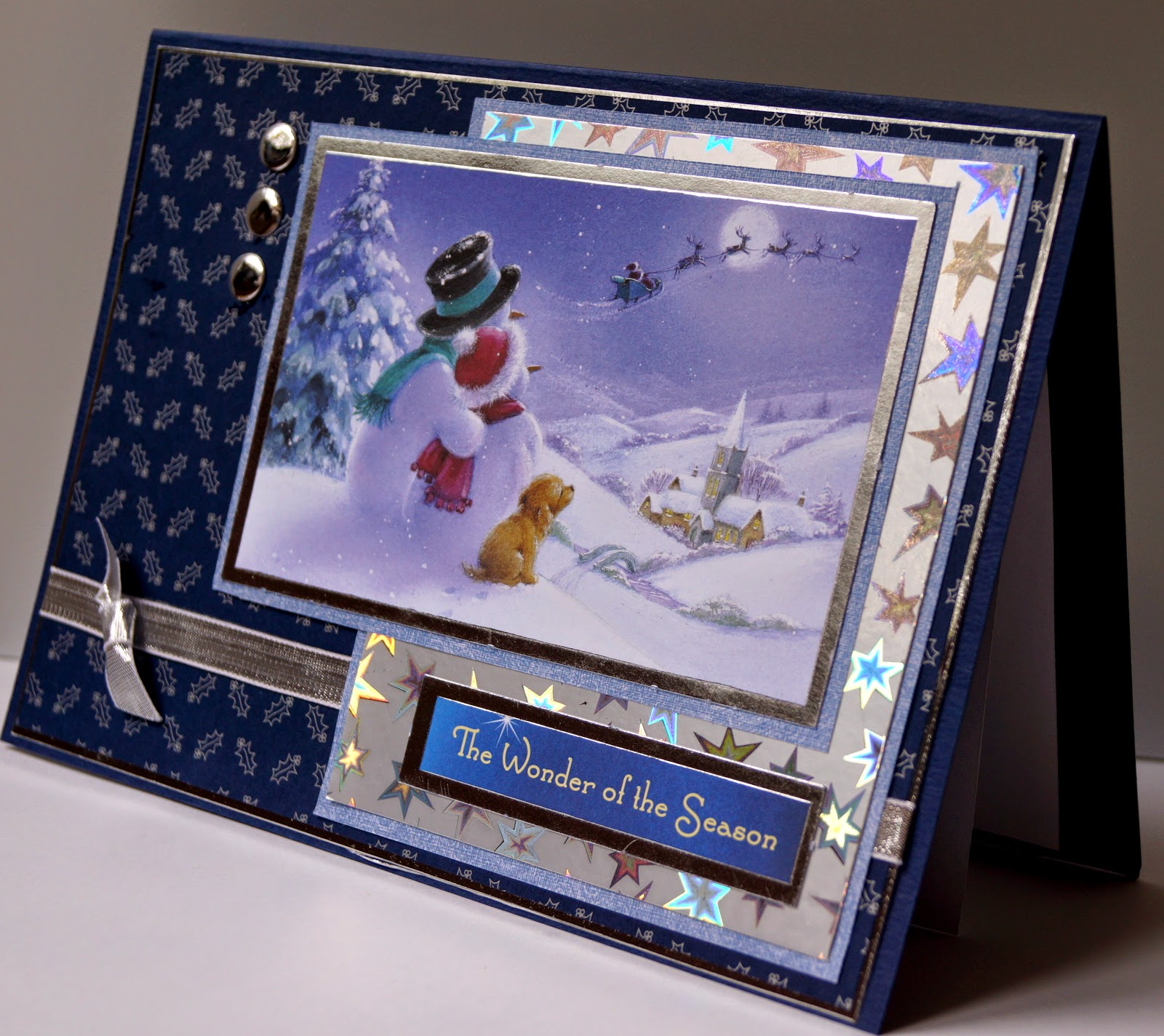 I made this card using papers and decoupage that came free with a magazine last Christmas, following one of the suggested makes in the magazine because I thought it looked so sweet.