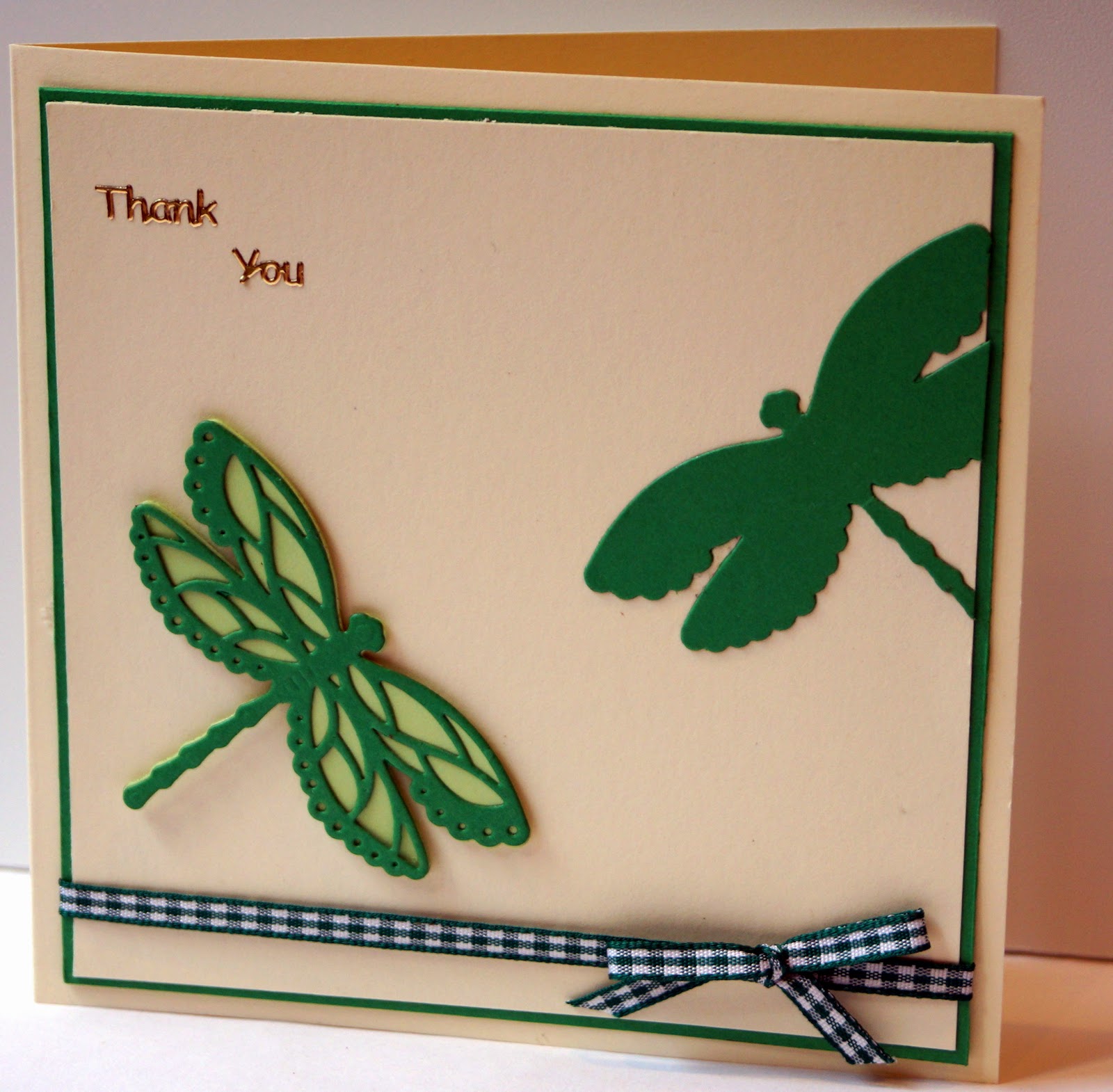 Have I ever mentioned that I love dragonflies? Er, what's that - "incessantly"? OK, I may have mentioned it in passing just a *few* times. I've got dozens of dragonfly stamps, and many, many images on CDs, but until recently I didn't have a dragonfly die at all. After seeing the tutorial on Hope and Chances I bought one right away and this week I have created my own version of the card that the talented Christine showed on her blog.
