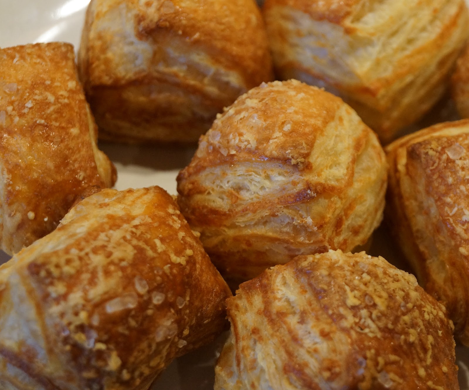Now roughly measure the distance up one side of the cheese, across the top and down the other side, and find a plate or pan lid 2-3cm wider than that measurement, and use it as a template to cut a second circle of pastry.