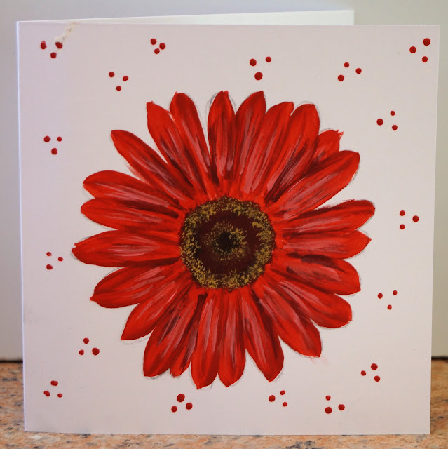 Before I sign off for today, I'd like to quickly mention the Make It Show which is on in Farnborough today and tomorrow. I've been there today and met up with lots of my crafty friends. I wasn't planning to shop, apart from a few basics (I'm sure I use more brown card than anyone else in Craftdom!) so it gave me time to watch lots of the lovely demonstrations and take part in one of the Make and Takes, an acrylic painting session. I'm not very skilled at painting so it was great to lean some brush techniques. I'm quite pleased with this for a first attempt!