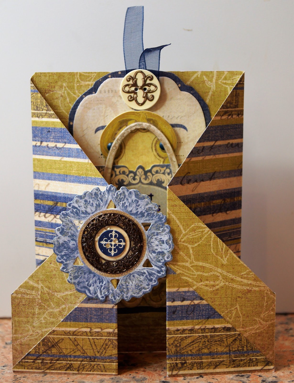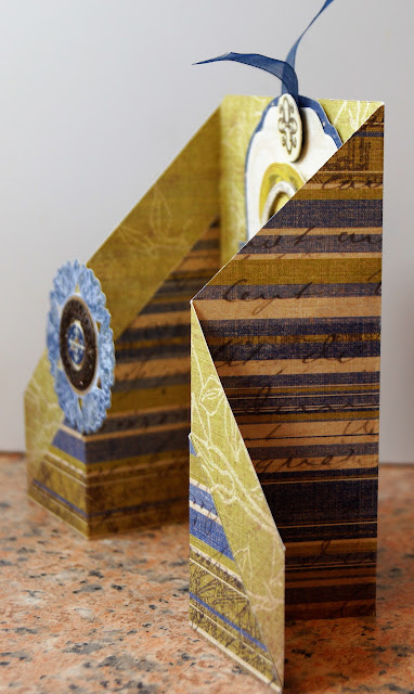 All the elements apart from the metal trim and brads came from the K & Company Blue Awning collection - a beautiful set of designs that, although many floral designs are included, is in a strong blue/green/cream colour palette perfect for masculine cards. I bought mine many years ago and apart from about half of the 12 x 12 pad have very little left now - sadly it is discontinued but it's done me sterling service over the years.