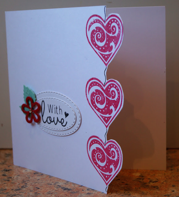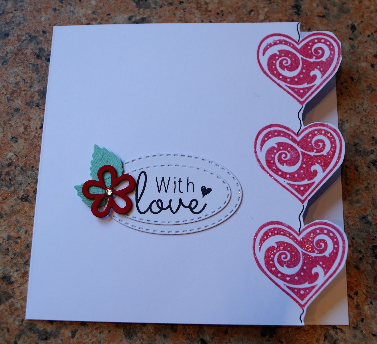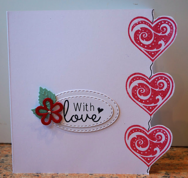 I think I'd better get myself a few boyfriends, as I've made several Valentines Day cards this year! Apart from the one I've actually made for Mark, which obviously I'm not sharing yet as he reads this (oops, better delete that bit about the boyfriends....) this will be my last for this year, so I'm sharing it with several challenges.