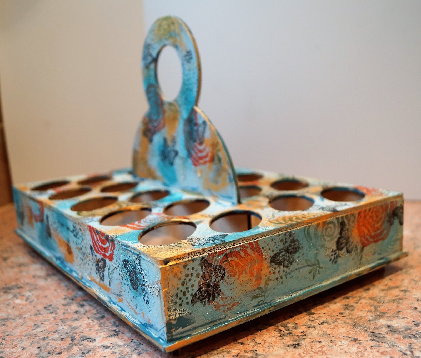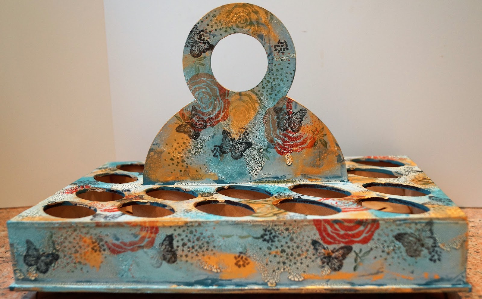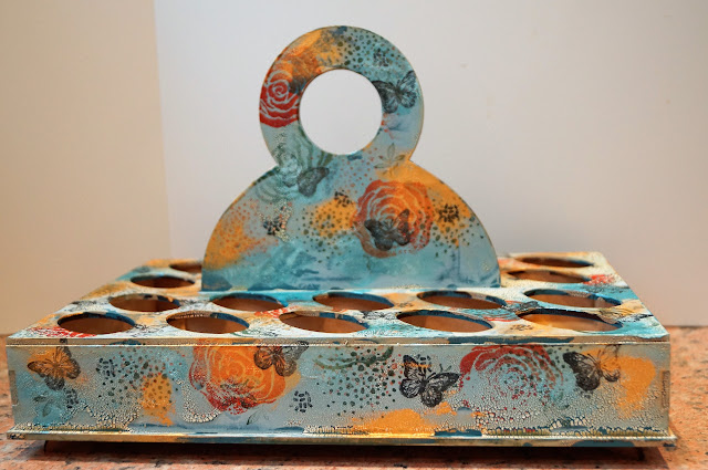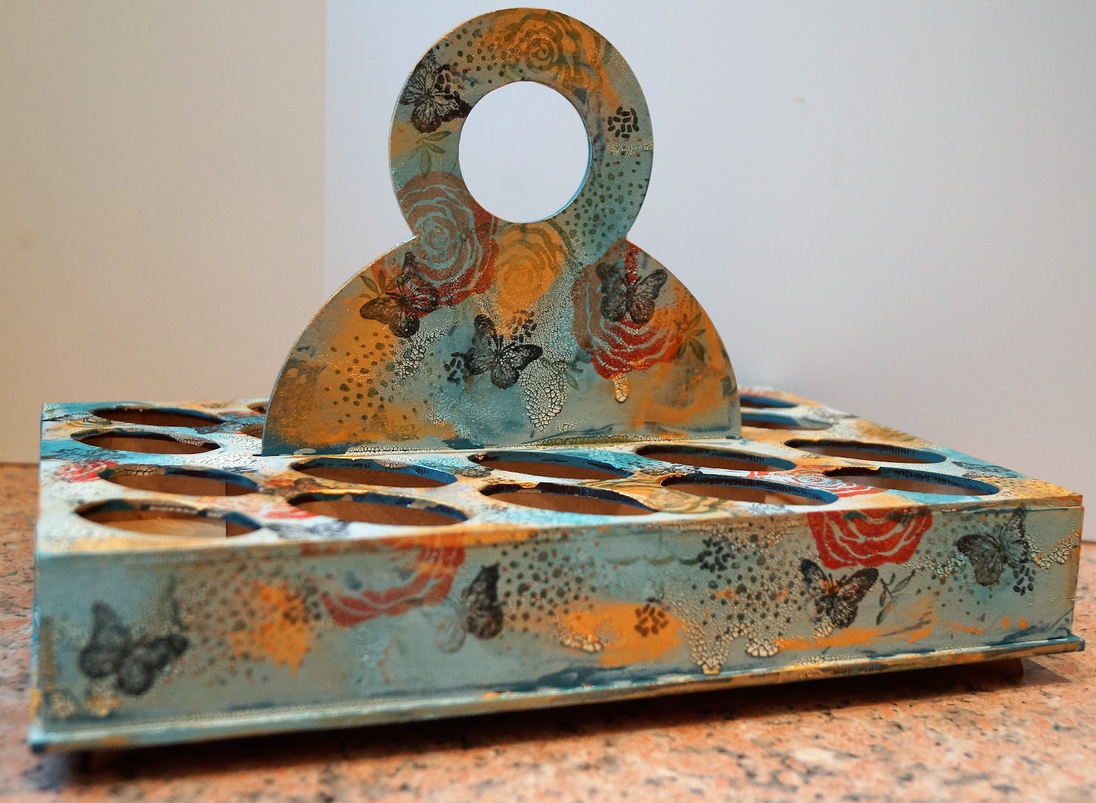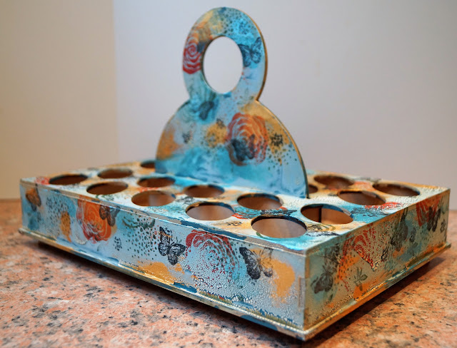 If you are one of my regular followers, you might have noticed that for a few days my only posts have been planned DT ones, and that I've not been churning out my usual couple of cards a day. You may have put that down to missing mojo or lack of time, but actually I've been busy working on a much more ambitious project than I usually tackle, using several new-to-me techniques. So hre we have....... drum roll...... the ink storage unit.