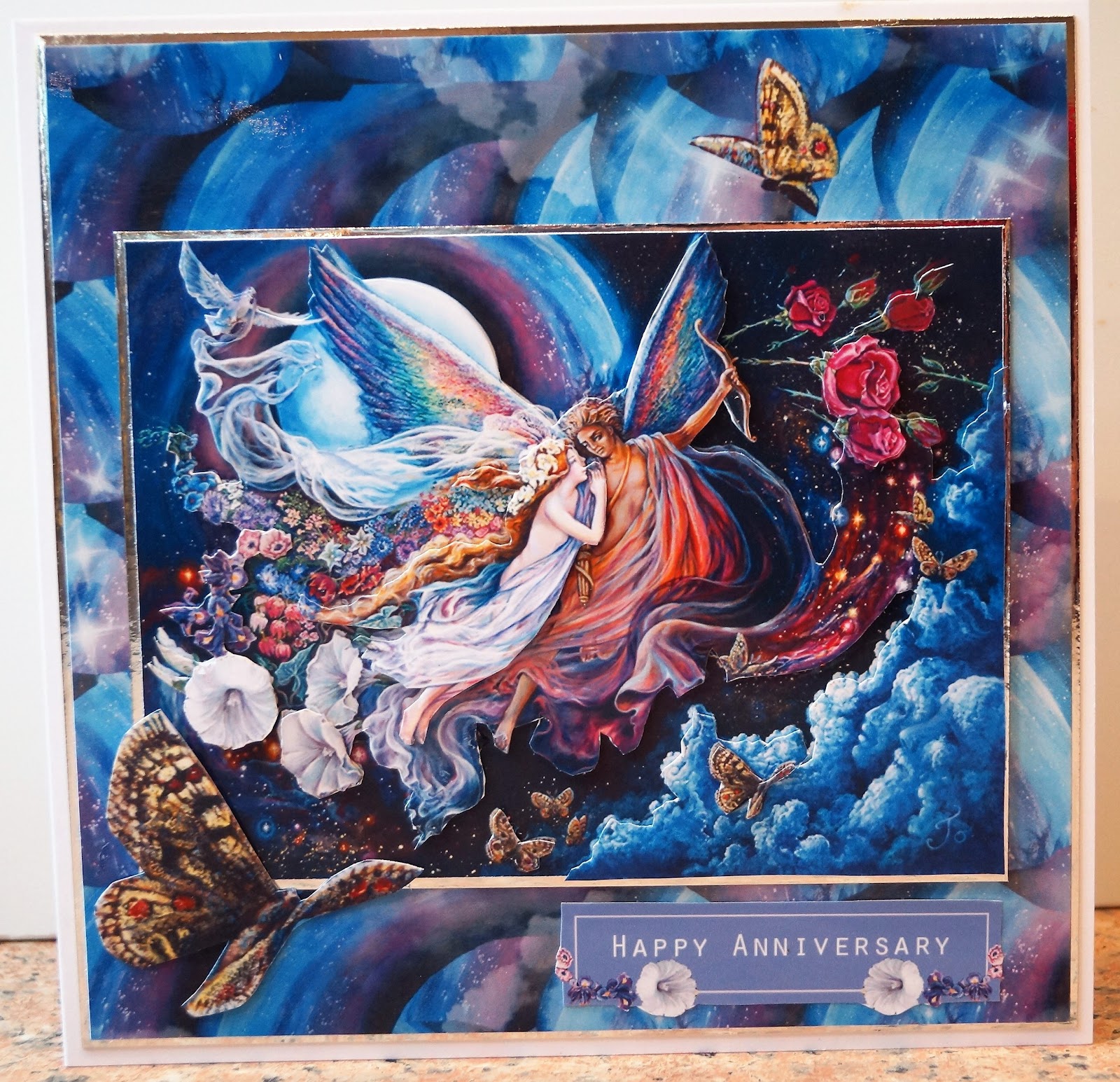 I've used the Joanna Sheen project book and CD Rom set of amazingly detailed images from Josephine Wall. This image represents the story of Eros and Psyche - I'm more used to calling it Cupid and Psyche, so I don't know who is getting their Greeks and Romans mixed up, me or Josephine! But whether you call the gentleman Cupid or Eros, isn't it wonderful the way he is firing red roses instead of arrows from his bow?