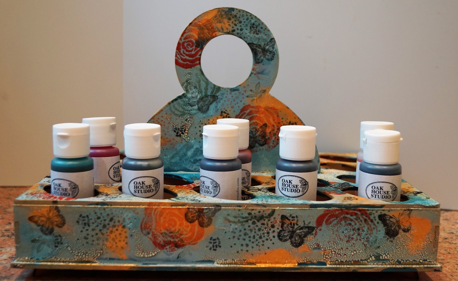 In recent months I've had several lovely craft prizes that have made me feel like stepping outside my comfort zone. The first was from Oak House Studios, and as well as lots of lovely stamps the prize included some watercolour inks in bottles, and a flat packed MDF storage unit for them. I've used the inks several times but didn't really know how to tackle the storage unit.