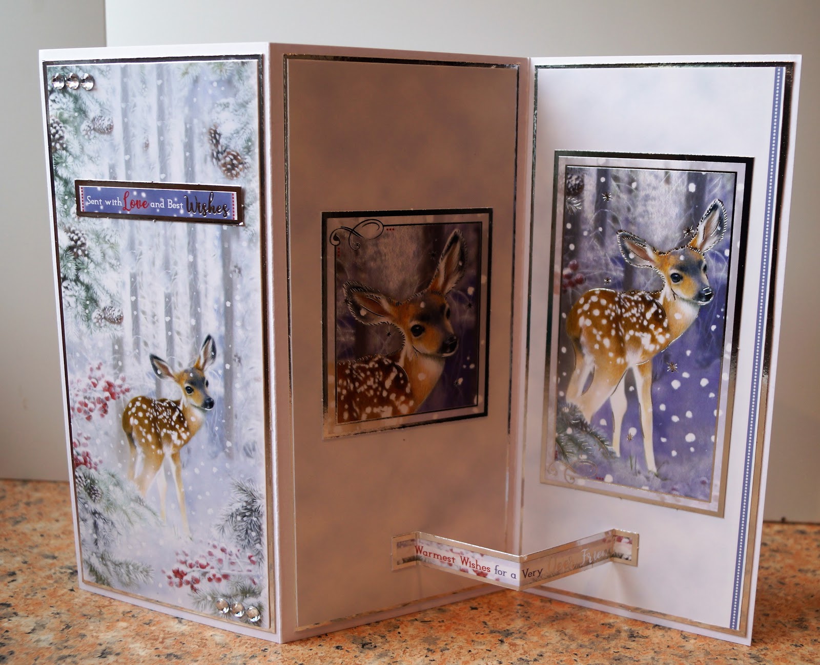 Finally, the Wonderful Wintertime collection and I chose a Santa and reindeer image to make one of my favourite card folds, a double easel with diagonal card.
