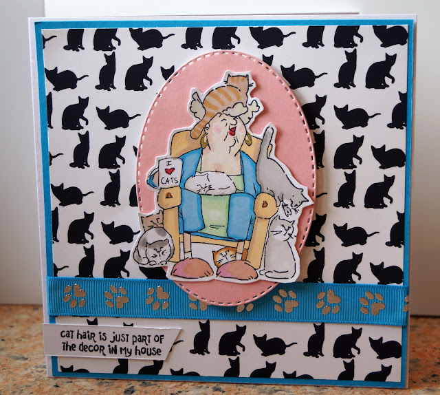 I'm sure you all know how much I love cats so I'm very happy with Edna's choice for the latest challenge at the Sisterhood of Snarky Stampers - C is for Cat.